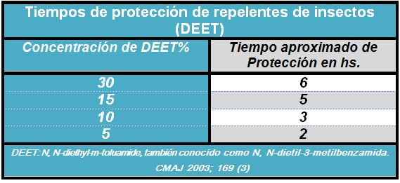 La eficacia de DEET, para repeler mosquitos está directamente relacionada con la concentración del producto químico aplicado. Sin embargo, la duración de la acción alcanza una meseta a una concentración de 50%.