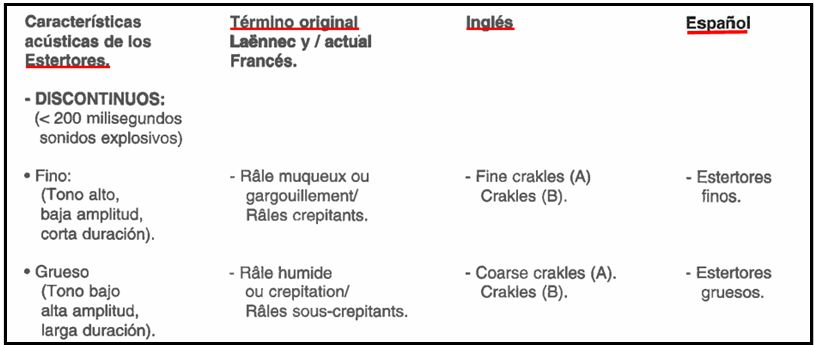 Existe un gran espectro de interpretaciones en cuanto a los ruidos pulmonares patológicos, las descripciones y la validez de los mismos han sido cuestionadas por varios trabajos.