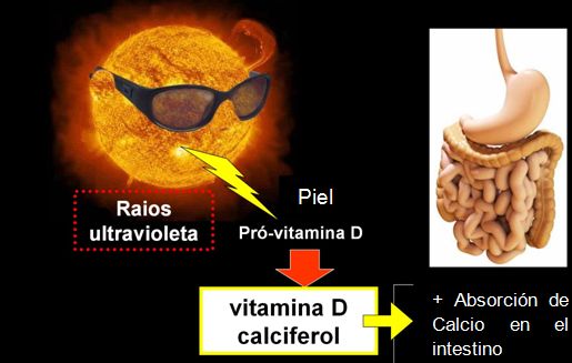Muy pocos alimentos la contienen de forma natural, o están fortificados con vitamina D. Por lo tanto, la principal causa de la deficiencia de vitamina D es la exposición inadecuada a la luz solar. El uso de un protector solar con un factor de protección solar de 30 reduce la síntesis de vitamina D en la piel en más de un 95%.