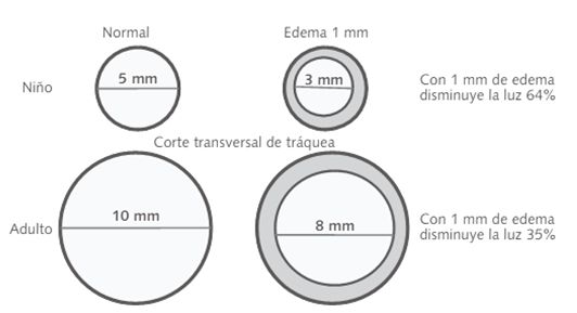 La vía aérea del niño tiene un diámetro más pequeño por lo tanto es más probable que se obstruya en forma significativa con pequeños cuerpos extraños.