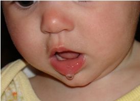 Se denomina babeo, cuando la saliva está presente más allá del margen de labios, es normal en los bebés y niños pequeños.