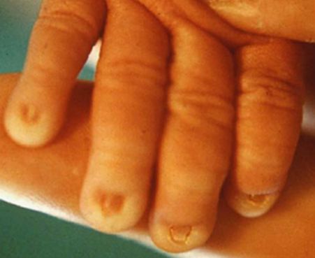 El instituto nacional de salud de los Estados Unidos (National Institutes of Health) menciona en su página web, destinada al Síndrome de Turner: “Algunas personas con síndrome de Turner tienen un cuello corto con repliegue, implantación baja del cabello en la parte posterior del cuello, orejas de implantación baja. Las manos y los pies de los individuos afectados pueden estar hinchados al nacer, y con frecuencia tienen uñas blandas, que dan vuelta hacia arriba en los extremos”