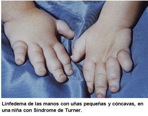 El linfedema afecta la anatomía de las uñas, con uñas pequeñas cóncavas hipoplasicas y con un mayor ángulo de inserción común en el Síndrome de Turner.