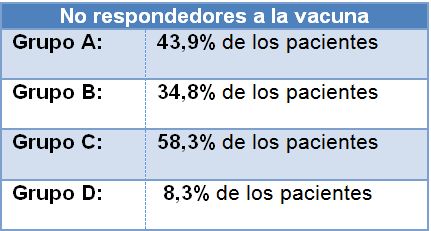Aproximadamente el 4% y el 10% de los individuos sanos, inmunocompetentes, no elevan los anticuerpos contra el antígeno de superficie de la hepatitis B recombinante (HBsAg) a niveles protectores, luego de completar el calendario de vacunación VHB estándar. (No respondedores)