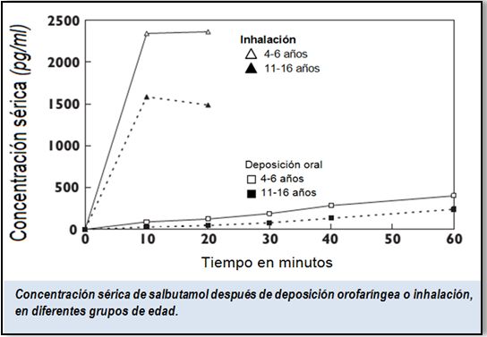 Los niños menores de 5 años, con pulmones más pequeños, se absorben una proporción menor de drogas, y se requieren dosis relativamente más altas para lograr efectos clínicos similares.