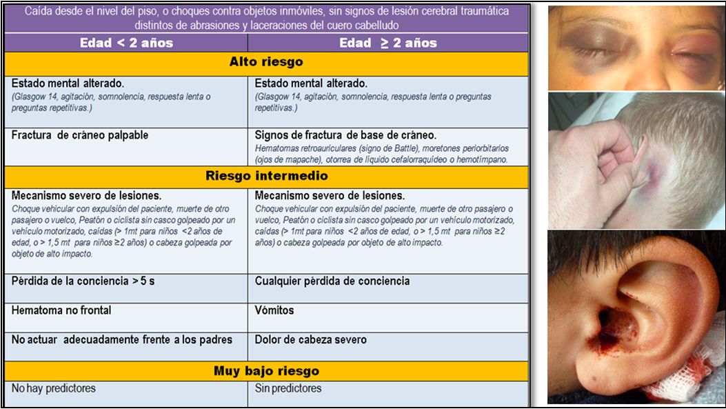 2. Evaluación del riesgo de lesión cerebral traumática (sobre todo en niños menores de 2 años de edad)