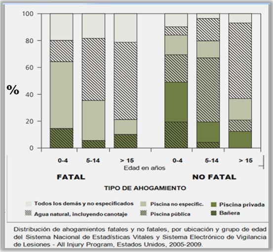 Para los niños estadounidenses entre 1-4 años de edad, el ahogamiento ha superado los accidentes automovilísticos como la causa de muerte más común relacionada con lesiones, en 2.6/100.000 personas anualmente. A pesar de esta importante carga sanitaria, las iniciativas de salud pública han quedado rezagadas debido a la falta de regulación en las definiciones y presentación de informes.