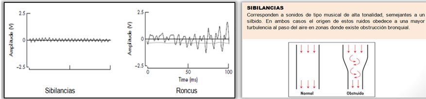 Sibilancias indica obstrucción parcial de la vía aérea, por ejemplo, debido a broncoespasmo, secreciones intraluminales, inflamación u otros cambios estructurales en las paredes de las vías respiratorias, o a la compresión dinámica de las vías respiratorias.