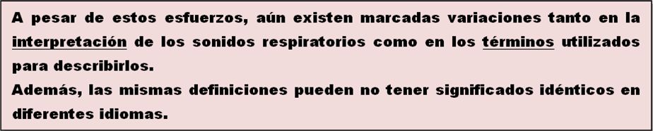 El examen de la literatura médica actual revela que se usan diferentes términos para los mismos sonidos pulmonares, y el mismo nombre se aplica a sonidos diferentes.