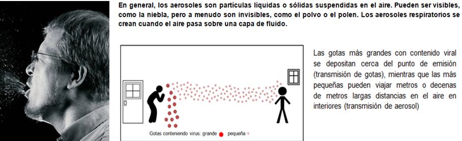 Consecuentemente, los aerosoles de personas infectadas pueden representar una amenaza de inhalación incluso a distancias considerables y en espacios cerrados, especialmente si hay poca ventilación.