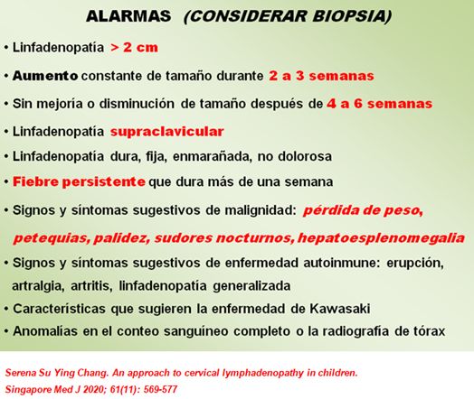 El siguiente algoritmo es generalmente recomendado, para el seguimiento de una adenopatía en niños. Resaltando