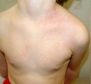 UN NIÑO CON UN EXANTEMA EN TRONCO