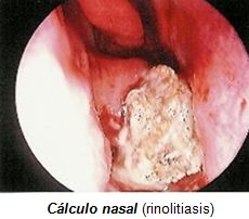 Los cuerpos extraños firmemente impactados y no reconocidos, con el tiempo pueden llegar a  recubrirse con  calcio, magnesio, fosfato, o carbonato y convertirse en un cálculo (piedra) nasal.