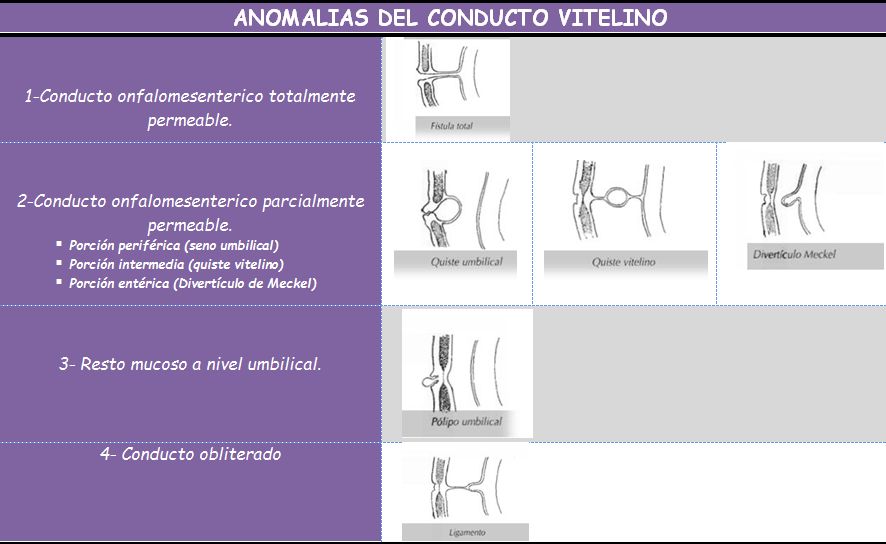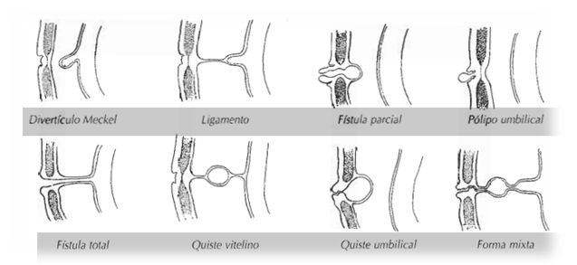La falta de involución, ya sea parcial o total del conducto onfalomesentérico (se estima que se presenta en un 2% de la población), da lugar a una variedad de malformaciones  cuya  presentación clínica puede  ser  diversa,  en cuanto a la forma y gravedad del cuadro clínico que producen.