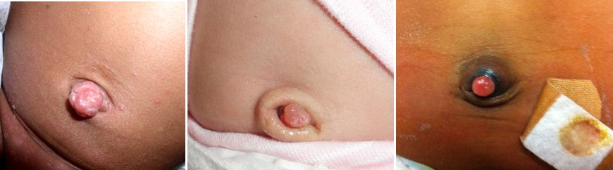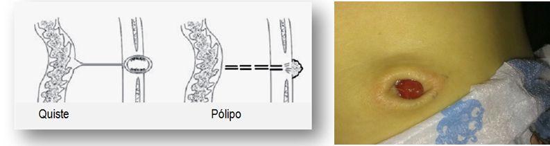 La aparición de una formación polipoidea a nivel umbilical de color roja y generalmente de un tamaño discretamente superior al típico granuloma umbilical, debe hacernos sospechar que nos hallamos ante restos de mucosa intestinal no involucionada.
