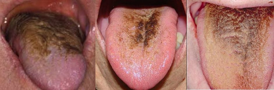 La acumulación de queratina en exceso de las papilas filiformes de la lengua dorsal conduce a la formación de hebras alargadas que se asemejan a cabellos. El color de la lengua puede variar entre el blanco o marrón a negro.