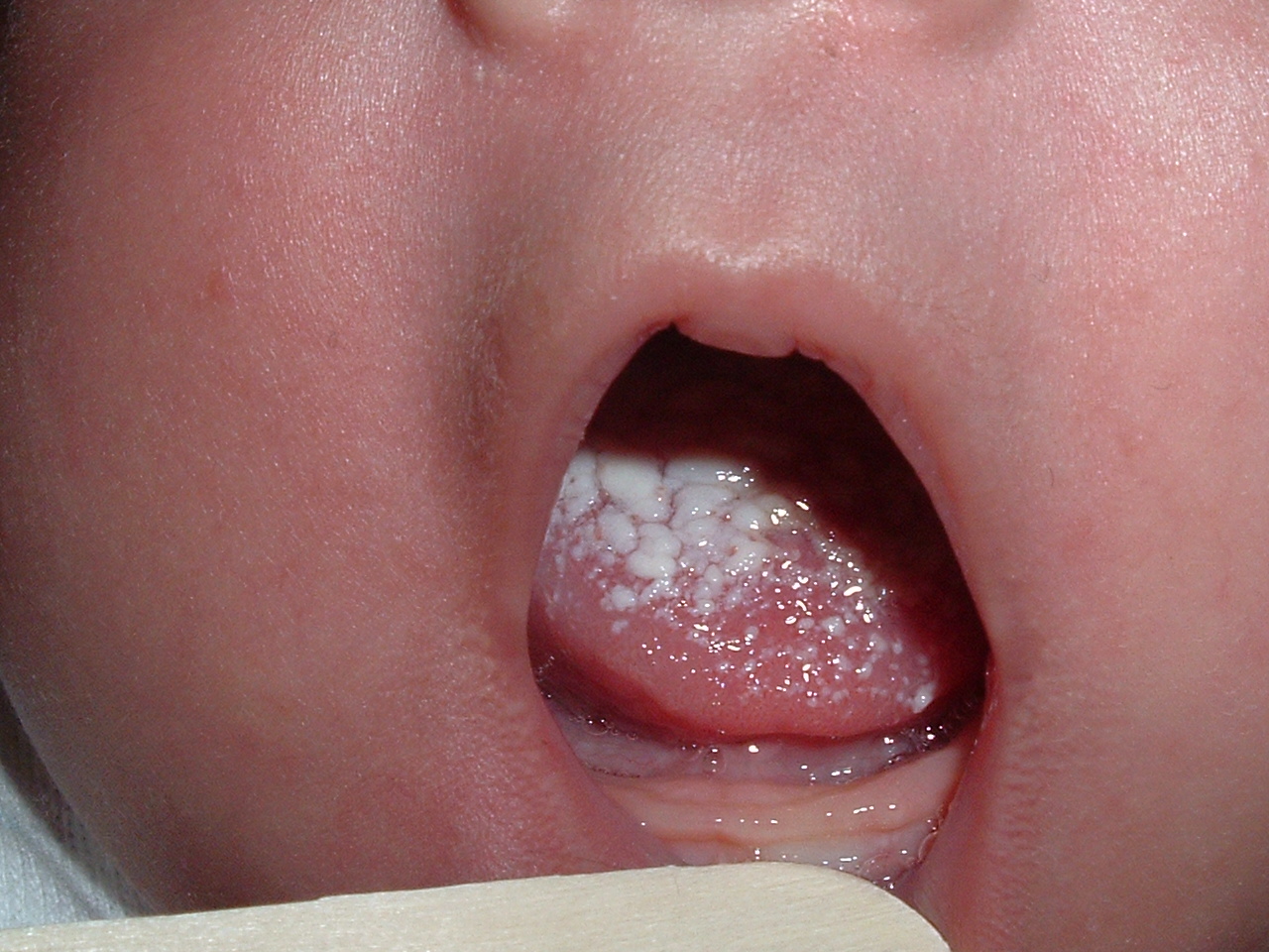 La glositis romboidal media está comúnmente asociada con una infección de Cándida y responde a los antifúngicos (por ejemplo, nistatina, clotrimazol, fluconazol) suministrados en forma de una suspensión oral. Ensayos controlados aleatorios que han demostrado que el fluconazol suspensión, es más eficaz que la nistatina en niños normales e inmunocomprometidos.