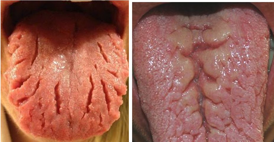 Lengua fisurada o plicata:  es una lengua con surcos profundos que pueden desarrollarse debido a la profundización de las fisuras fisiológicas de  la lengua normal. Su incidencia en niños de 5 a 18 años es solo del 1.08%.