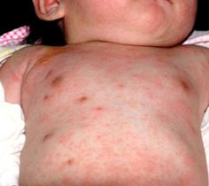Además, el área de la cara y el cuero cabelludo también pueden estar involucrados, lo que generalmente no ocurre en los niños mayores y adultos.
