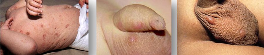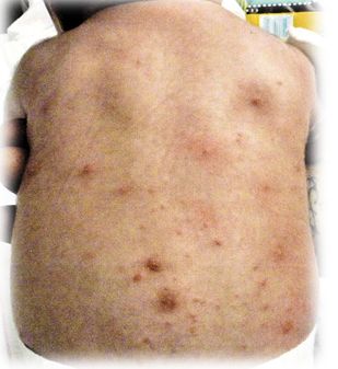 Desafortunadamente, muchos pacientes no presentan este cuadro clásico, sino una mezcla de las lesiones primarias, entremezcladas con, o camufladas por excoriaciones, eczematización, formación de costras, y / o infección secundaria.