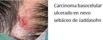 El nevo de Jadassohn debe diferenciarse del nevo epidérmico y de áreas de alopecia de cuero