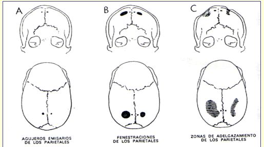Estos orificios o agujeros parietales agrandados no deben confundirse con otros defectos de la bóveda que aparecen en otros procesos como reticulosis, neoplasias, epidermoidomas, “granuloma eosinófilo”, sífilis y meningocele.