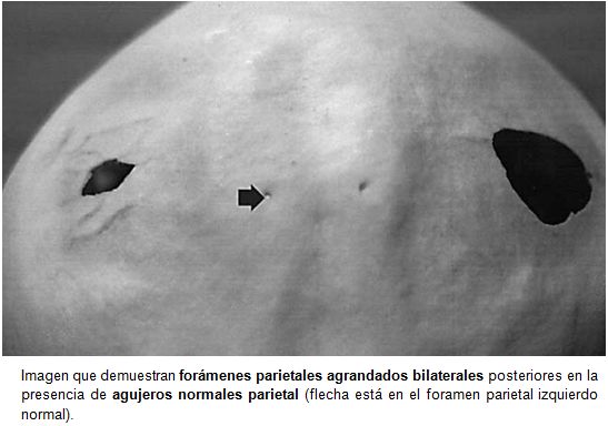 Cuando existe  una osificación insuficiente alrededor de la muesca parietal, ellos terminan como grandes agujeros permanentes.
