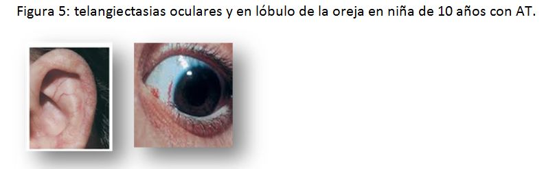 Ataxia telangiectasia (AT): síndrome autosómico recesivo caracterizado por ATAXIA CRÓNICA desde el inicio de la marcha-TELANGIECTASIAS e INMUNODEFICIENCIA COMBINADA.
