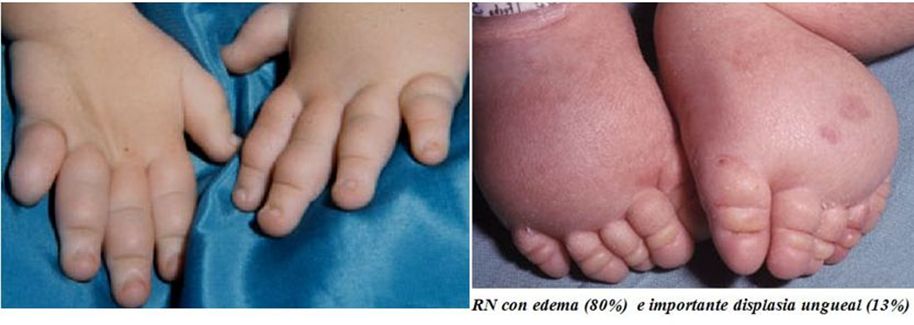 El linfedema afecta la anatomía de las uñas, con uñas pequeñas cóncavas hipoplasicas y con un mayor ángulo de inserción común en el Síndrome de Turner.