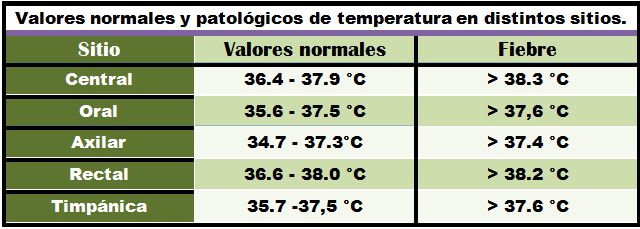 Según la enseñanza tradicional, la temperatura normal del cuerpo es de 37°C, pero en general se acepta que una temperatura de ≥38°C, medida por un termómetro rectal, representa fiebre.