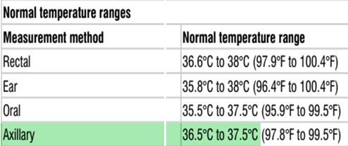• C J Morley. Axillary and rectal temperature measurements in infants. Archives of Disease in Childhood 1992; 67: 122-125.
