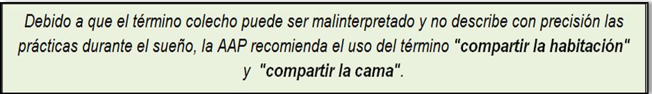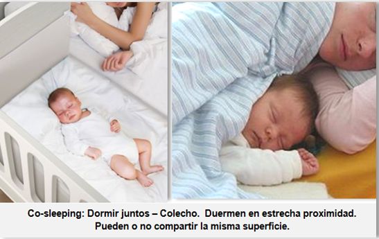 Los términos “compartir la cama' (bed-sharing) y 'dormir con el bebé - colecho' (co-sleeping)se usan indistintamente, pero no son sinónimos.