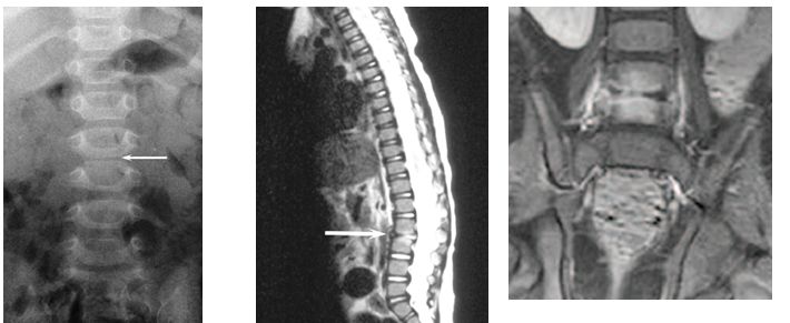 La resonancia magnética de la columna vertebral es el estudio de elección, ya que puede detectar discitis temprana, y excluyen los tumores de la columna vertebral.