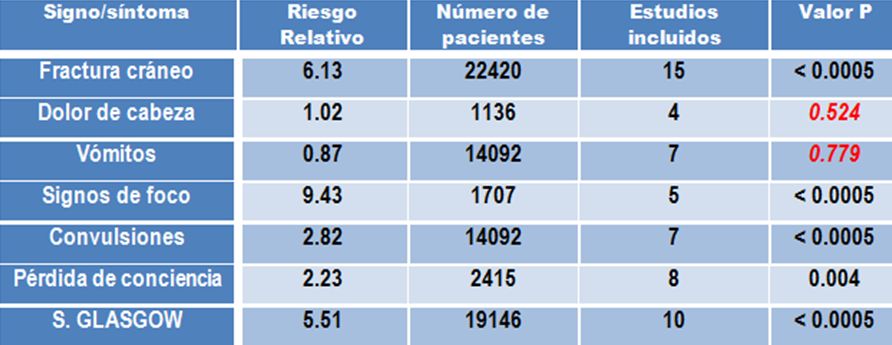 Por lo tanto, es imperativo poder seleccionar una población de mayor riesgo de lesiones intracraneales para practicar una TC.
