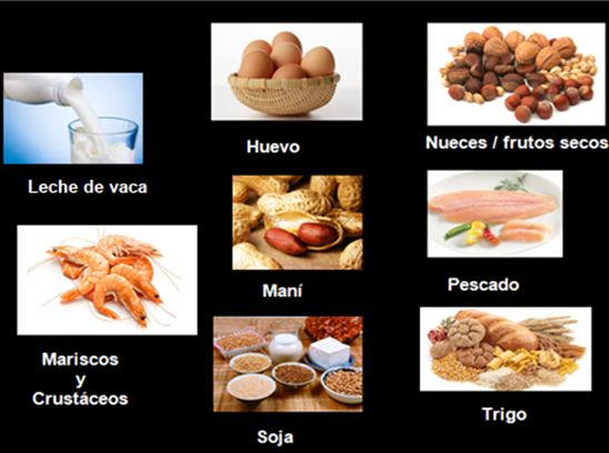 Más del 90% de las alergias alimentarias son causadas por 8 alérgenos comunes; a saber: huevos, maní, leche de vaca, soja, nueces, mariscos, pescado y trigo.