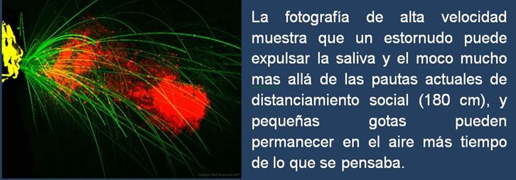 Por lo tanto, los aerosoles de personas infectadas pueden representar una amenaza de inhalación incluso a distancias considerables y en espacios cerrados, especialmente si hay poca ventilación. Y existe un interés actual en comprender los mecanismos responsables de la propagación de Covid-19 por estos medios.