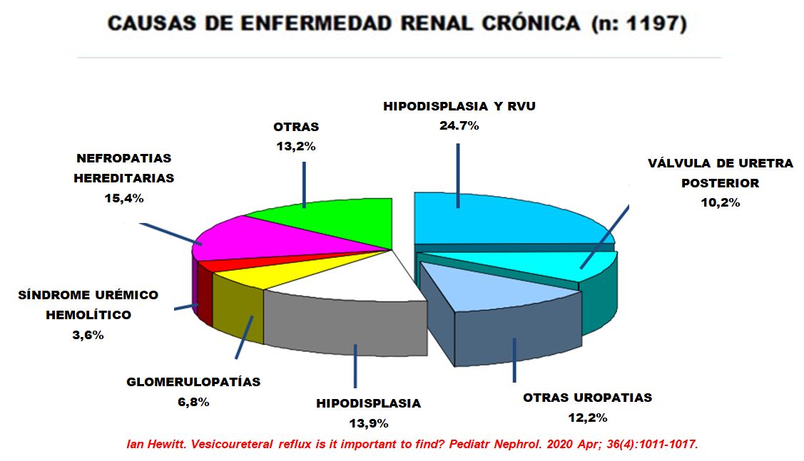 Ya en 1998  Sreenarasimhaiah  y Hellerstein publicaban….”Dado que las UTI son una causa poco frecuente de enfermedad renal en etapa terminal, en un niño por lo demás normal, esto debe tenerse en cuenta al decidir sobre la evaluación por imágenes adecuada después de una UTI”. En su publicación ellos muestran que de un total de 102 niños en enfermedad renal en etapa terminal solo 3 (2.9%) de ellos fueron diagnosticados con Nefropatía por reflujo.
