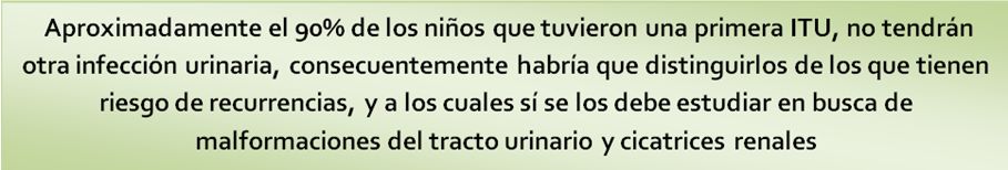 Una edad < 6 meses al ingreso predijo la recurrencia de ITU. Un gran porcentaje de los niños no tuvieron más de una infección urinaria.